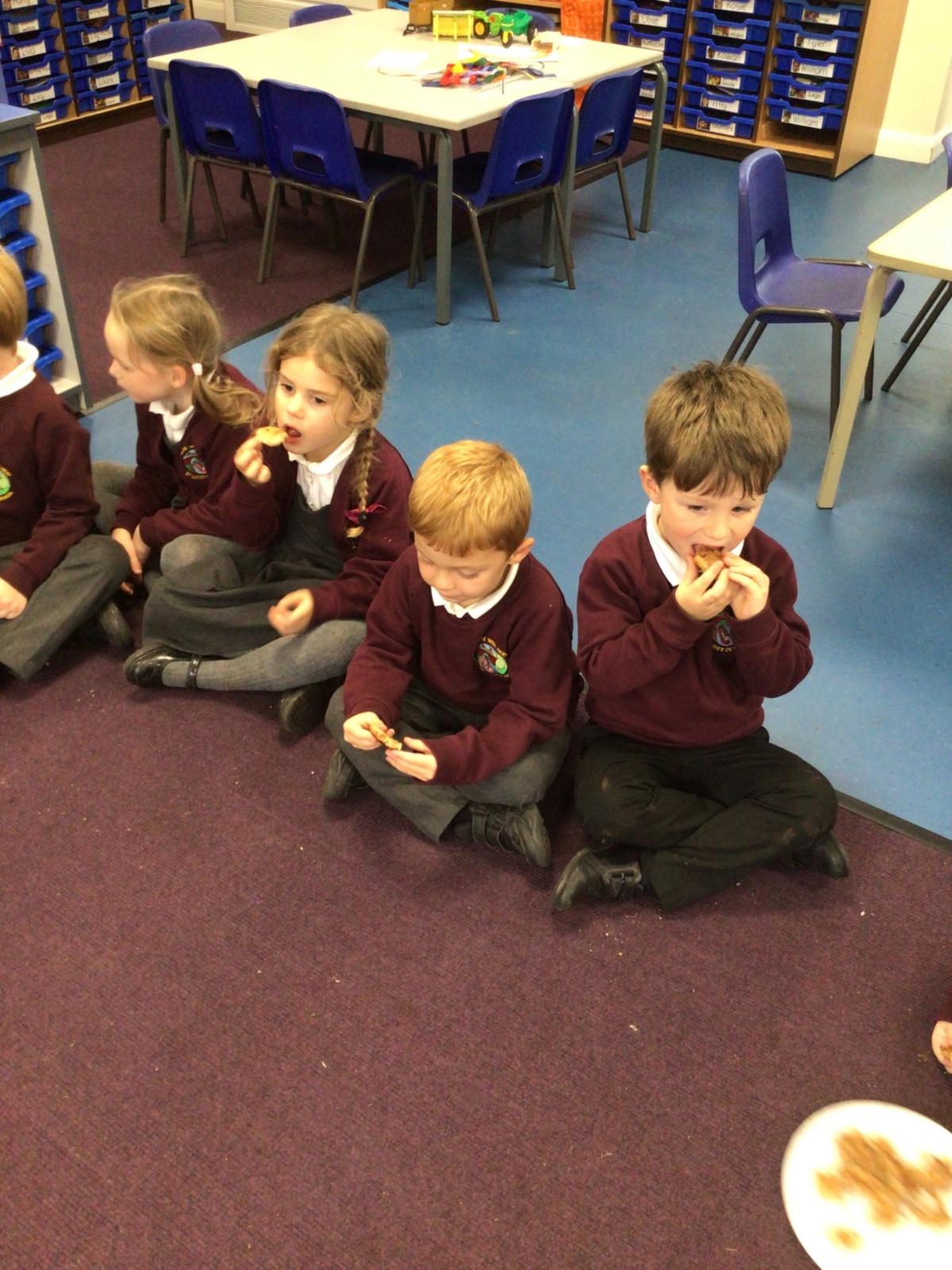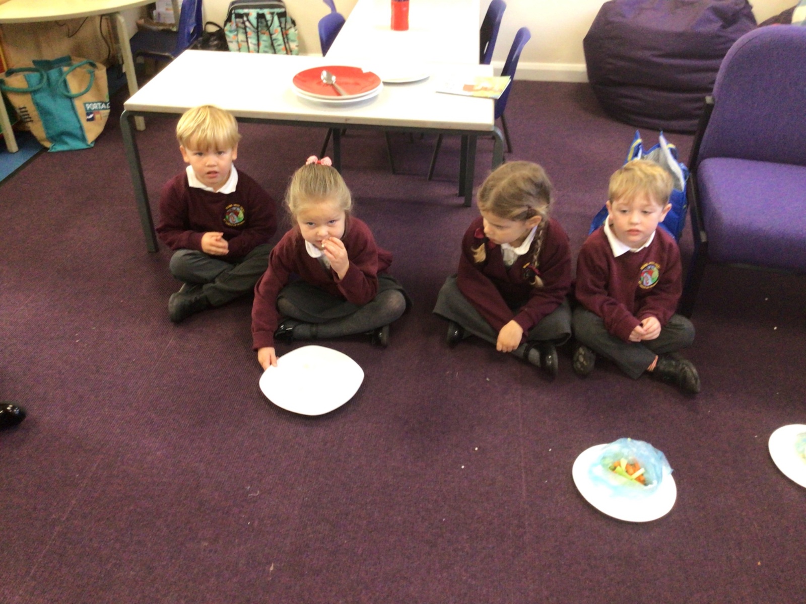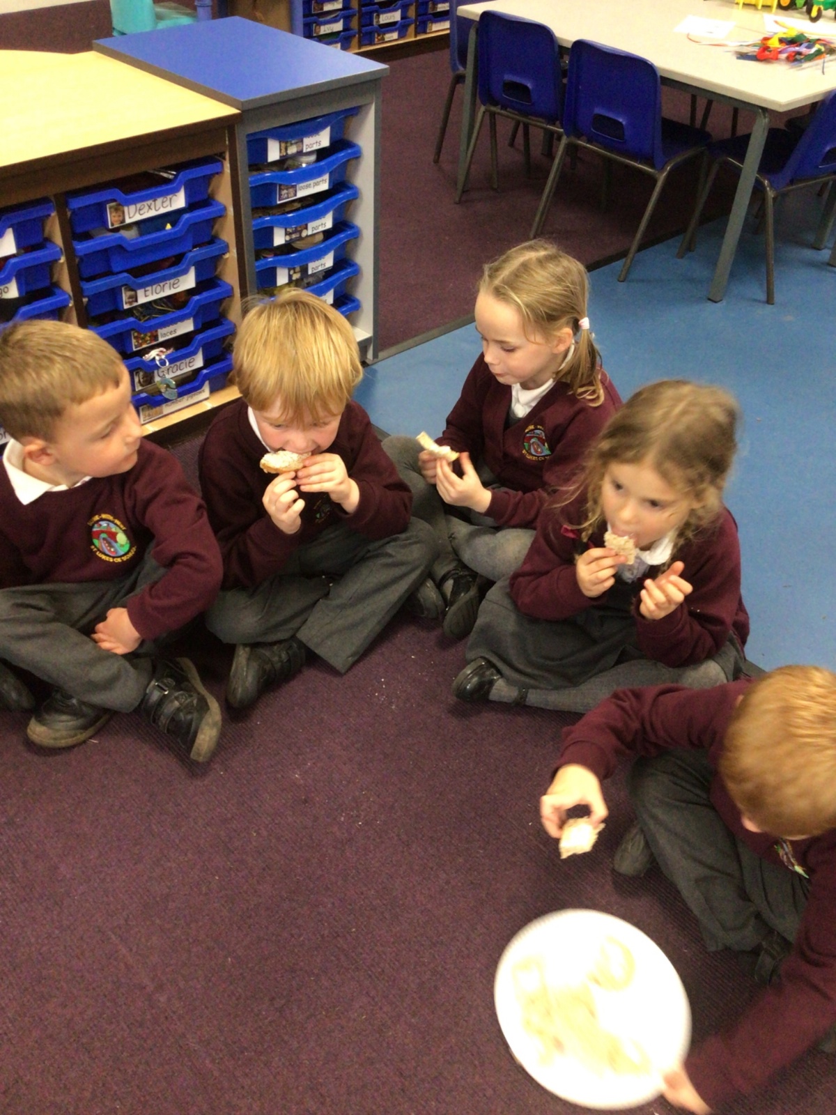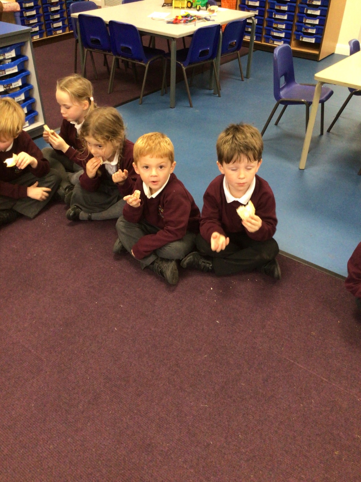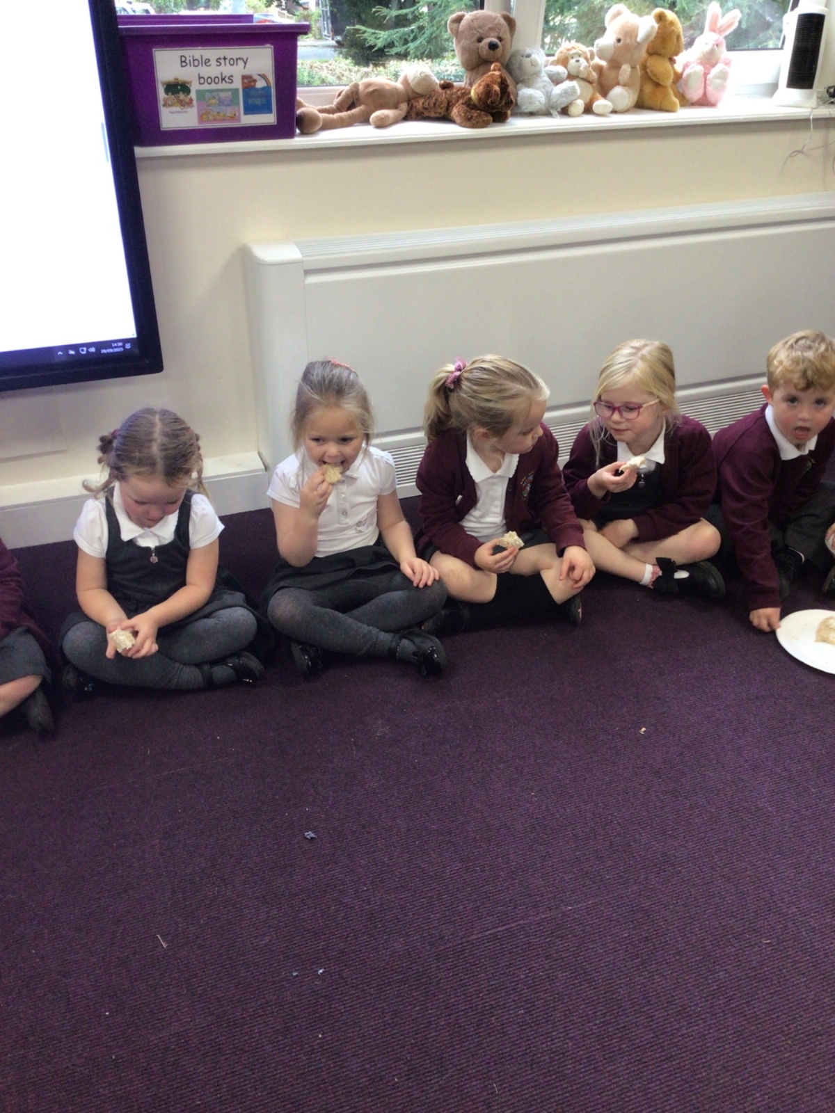 Lots of food today, we tasted raw vegetables ready to make soup, and we tasted different breads as part of our harvest work.