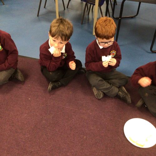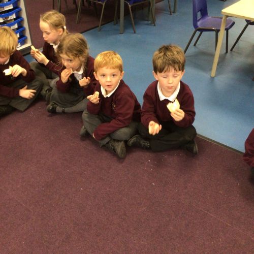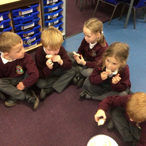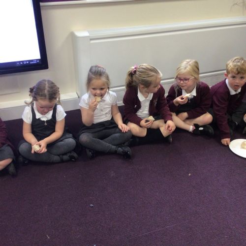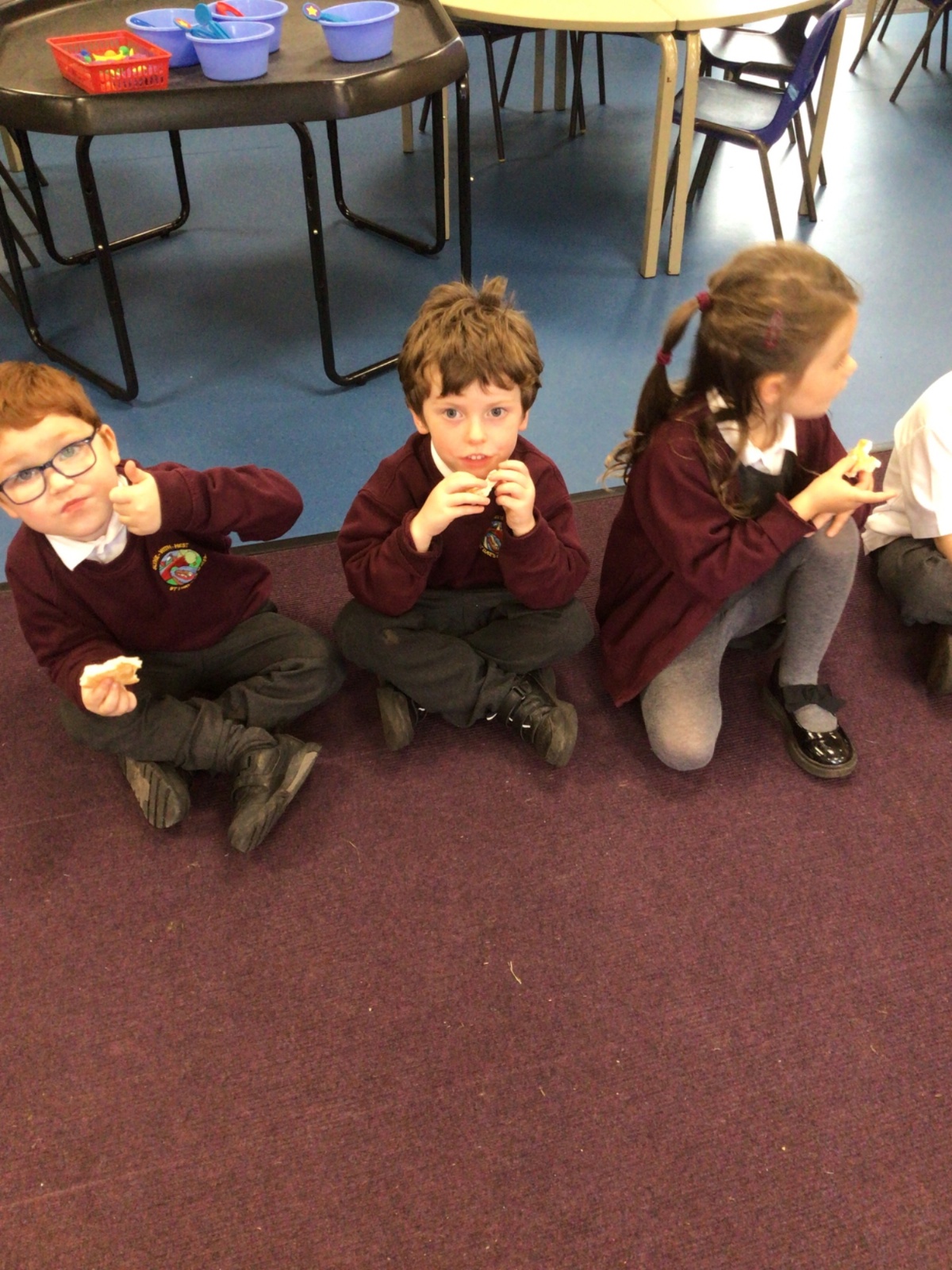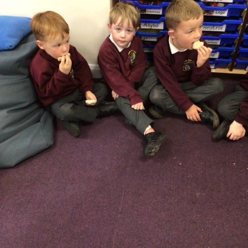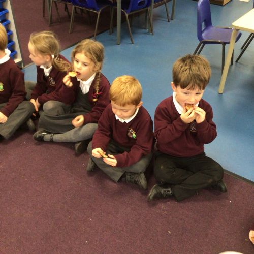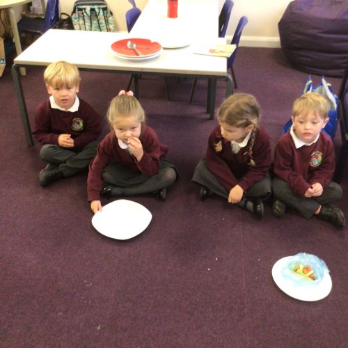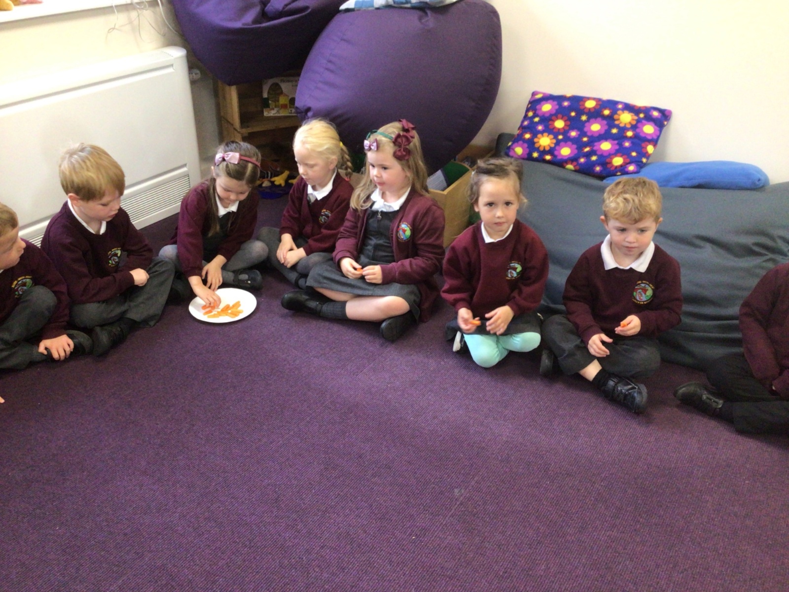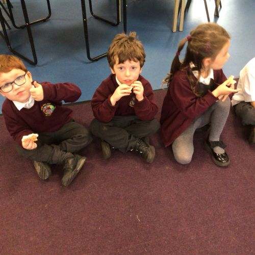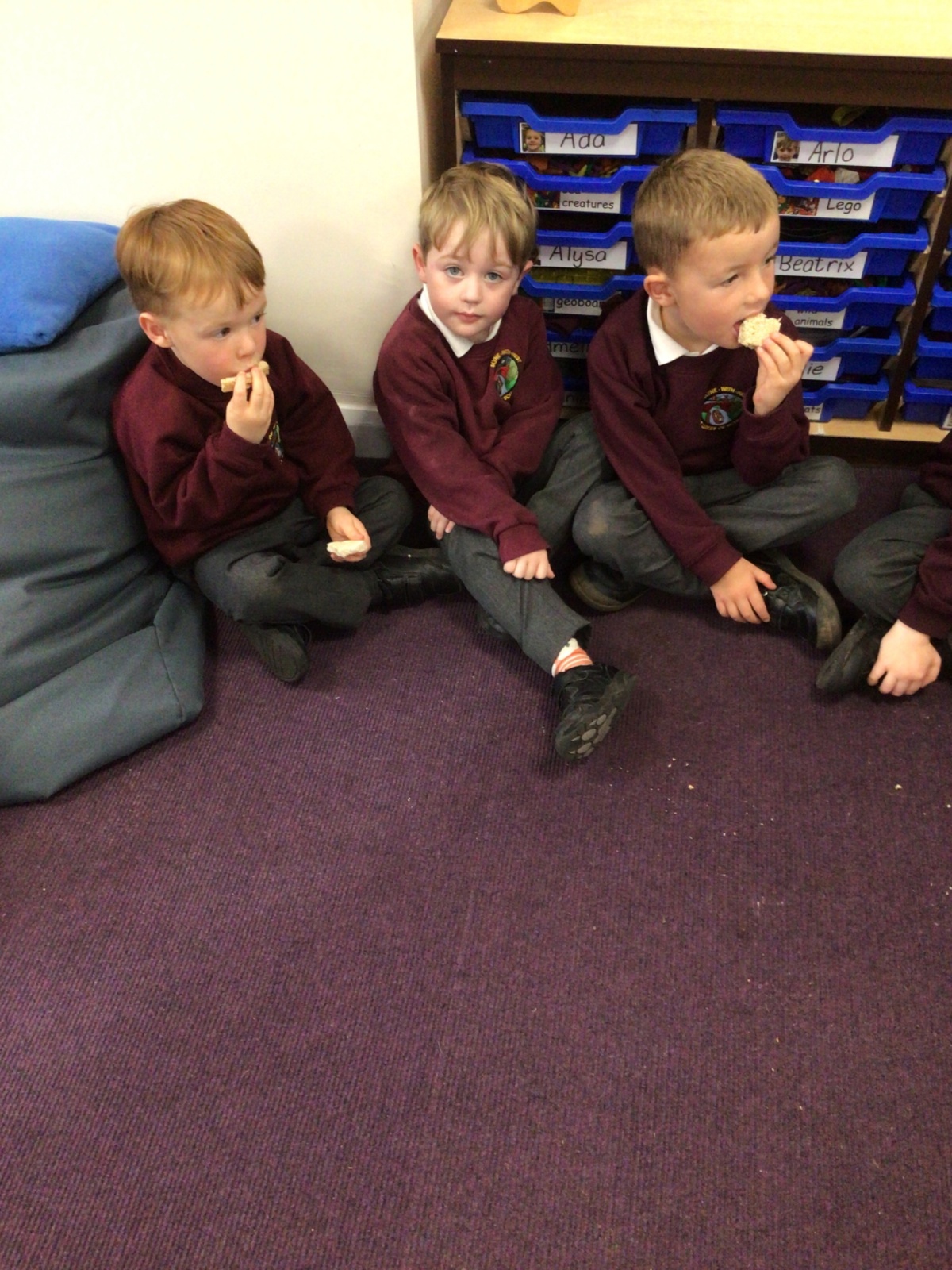 Lots of food today, we tasted raw vegetables ready to make soup, and we tasted different breads as part of our harvest work.