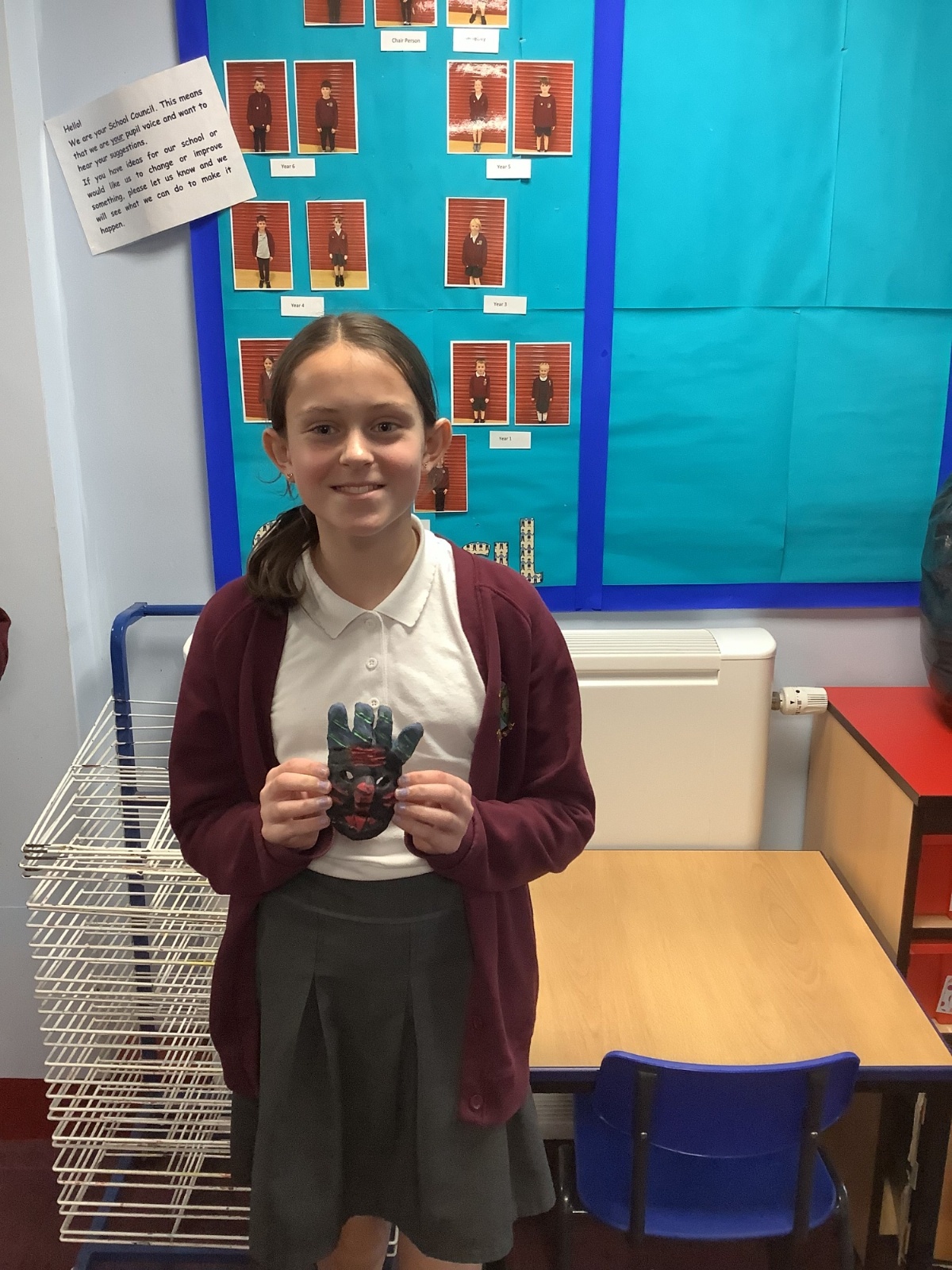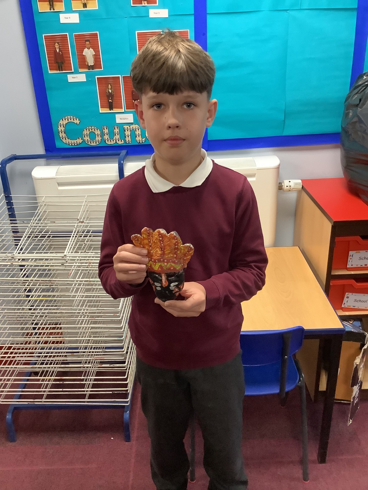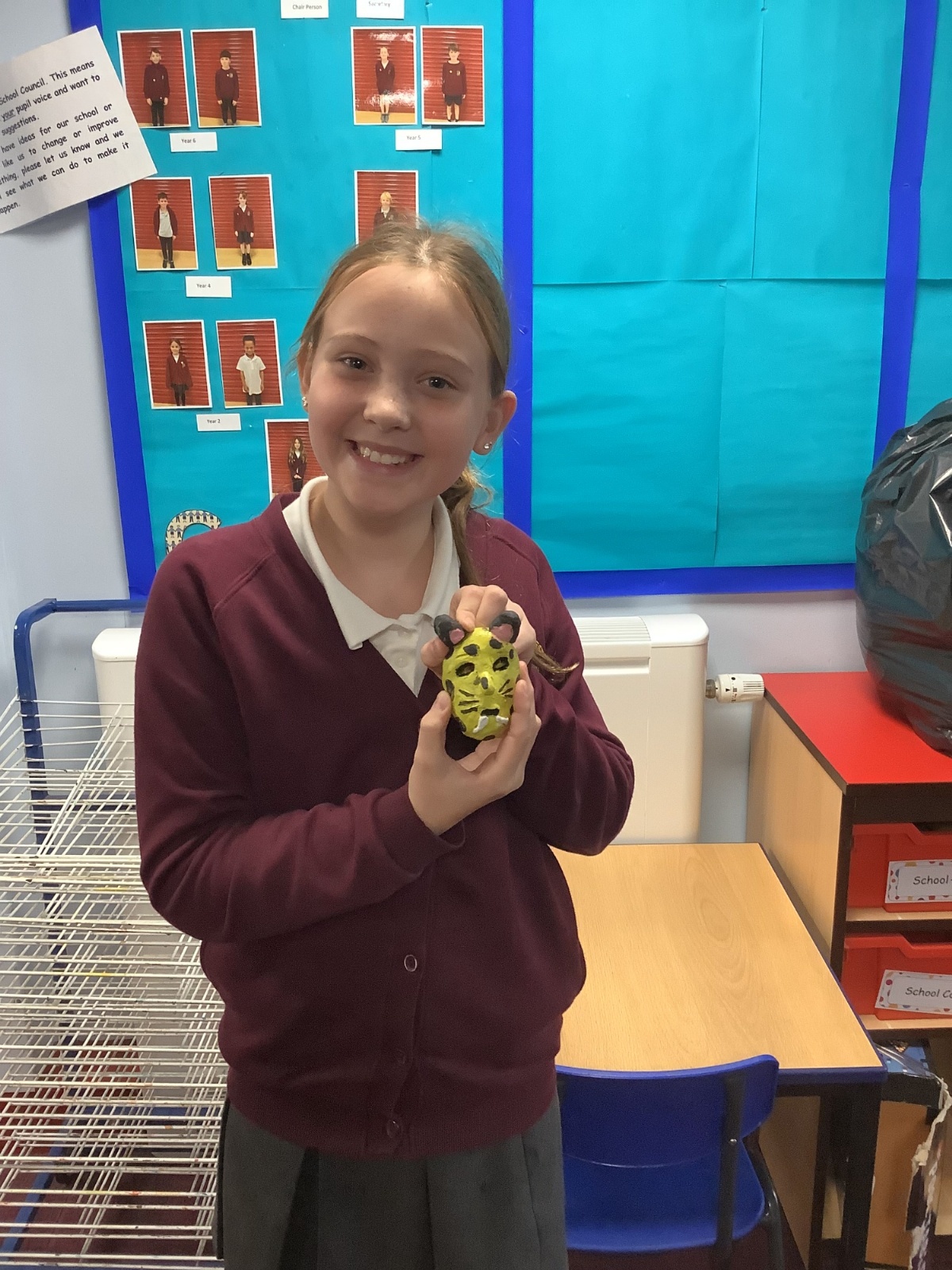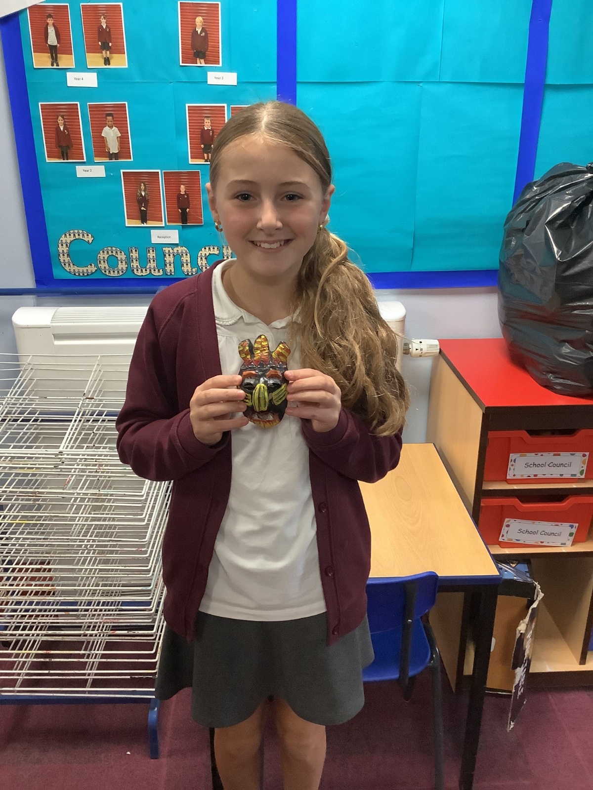 Year 6 have been exploring Mayan art and culture by studying different types of masks, including battle, death, and event masks. They then designed their own Mayan-inspired creations, carefully sculpting them from clay before painting and glazing them. The finished masks look amazing – a brilliant effort from everyone in Year 6!