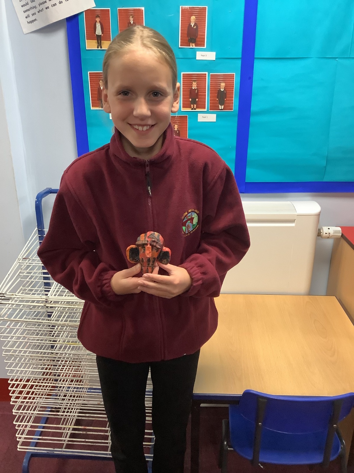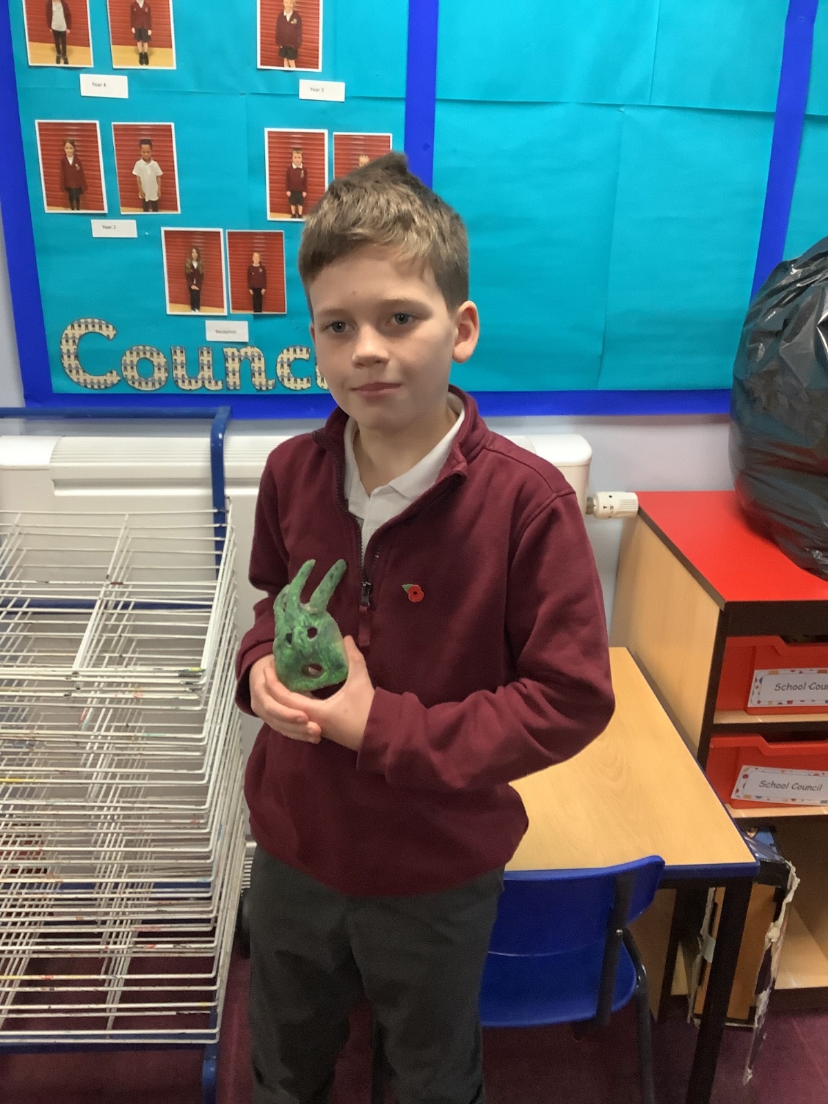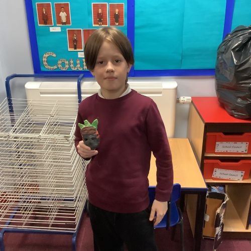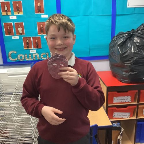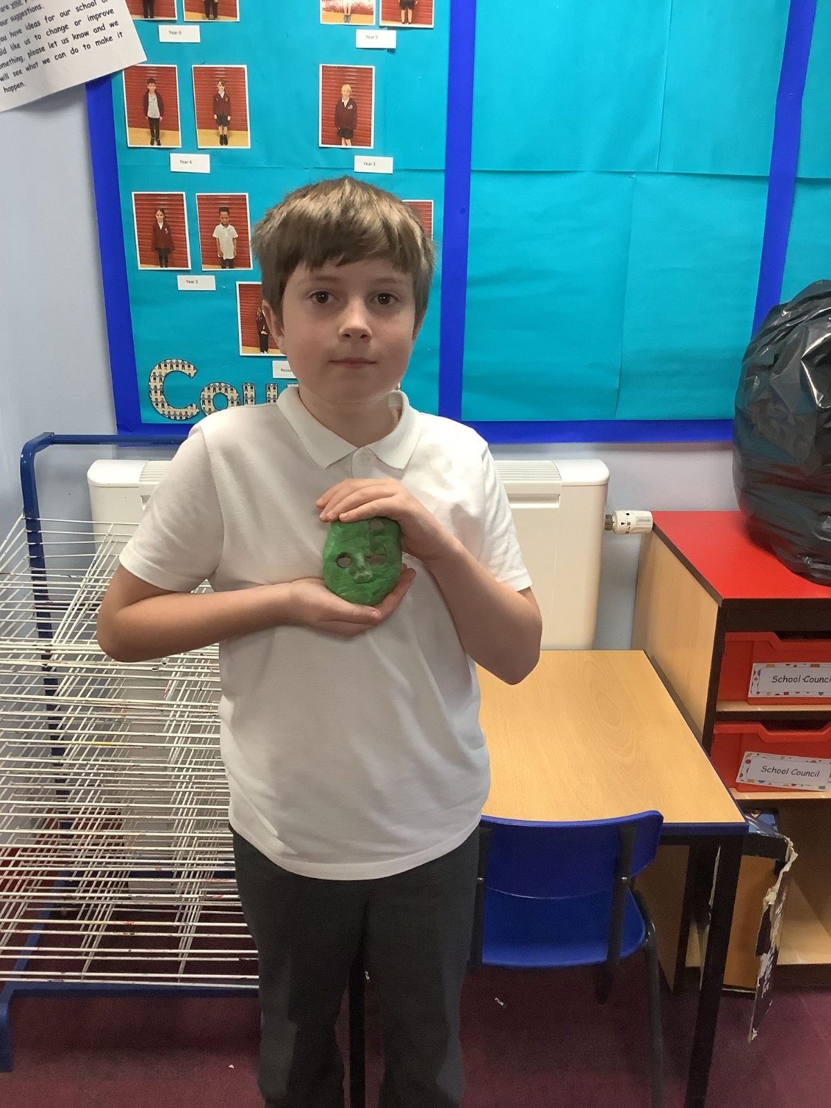 Year 6 have been exploring Mayan art and culture by studying different types of masks, including battle, death, and event masks. They then designed their own Mayan-inspired creations, carefully sculpting them from clay before painting and glazing them. The finished masks look amazing – a brilliant effort from everyone in Year 6!