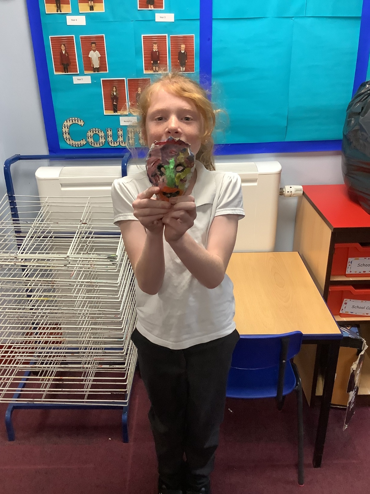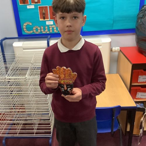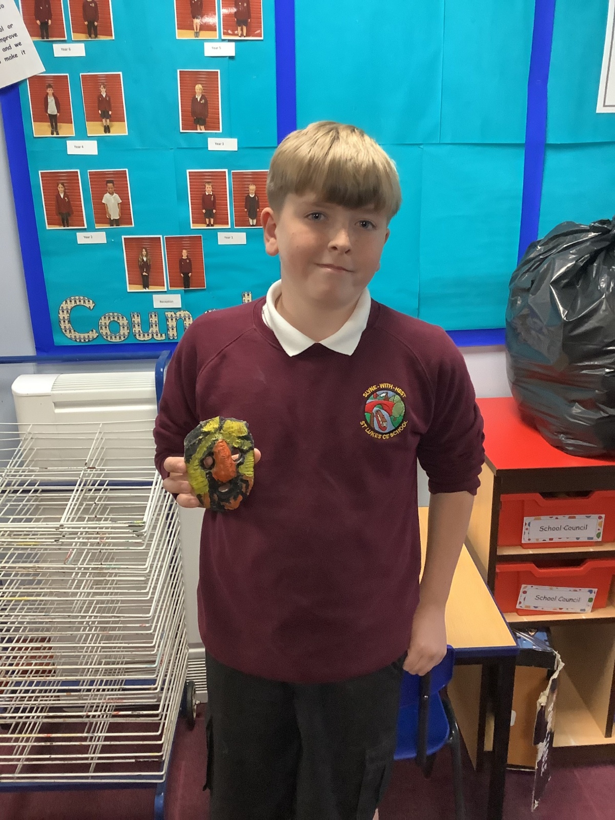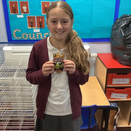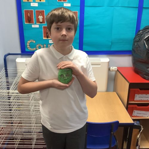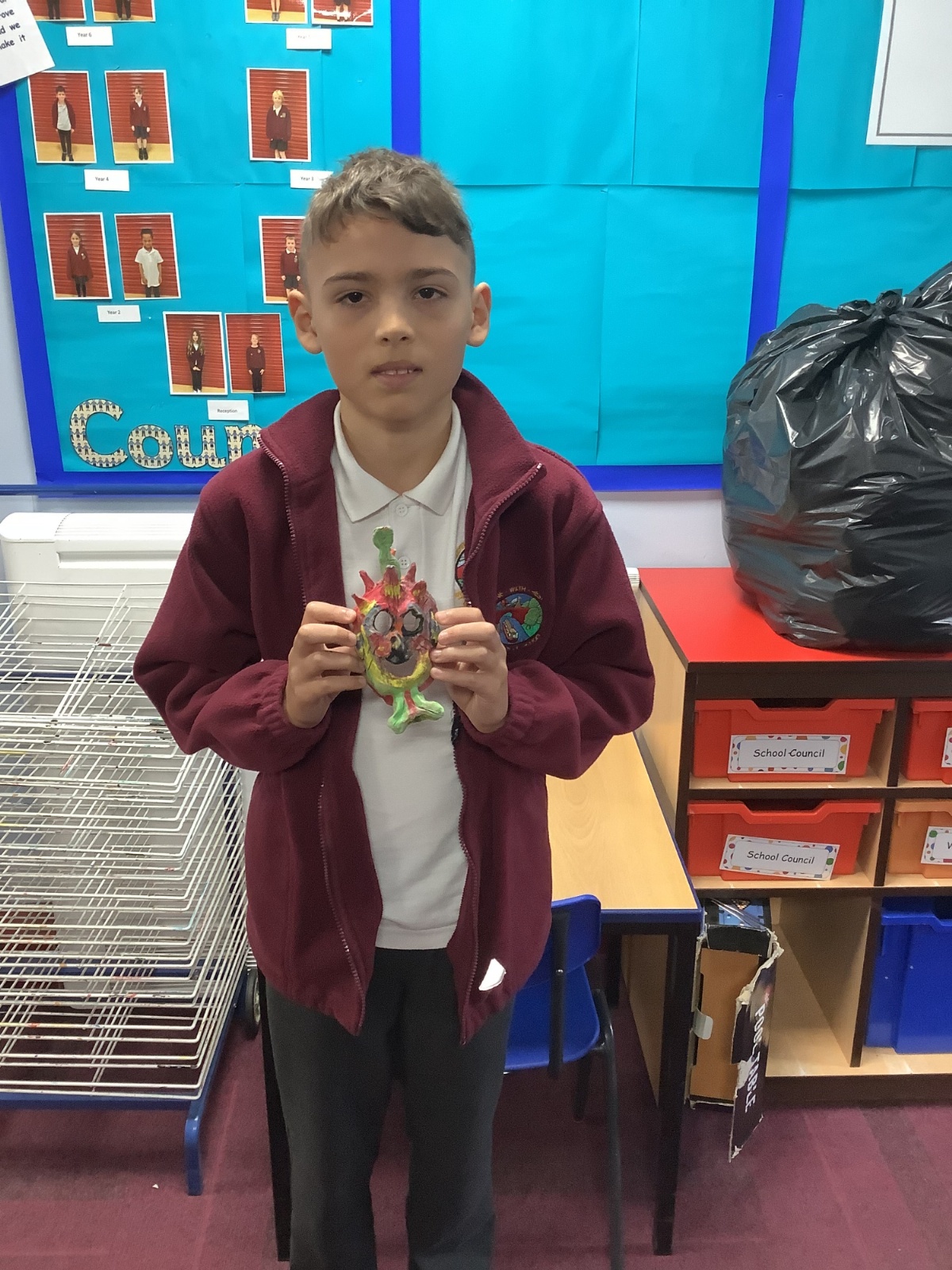Year 6 have been exploring Mayan art and culture by studying different types of masks, including battle, death, and event masks. They then designed their own Mayan-inspired creations, carefully sculpting them from clay before painting and glazing them. The finished masks look amazing – a brilliant effort from everyone in Year 6!