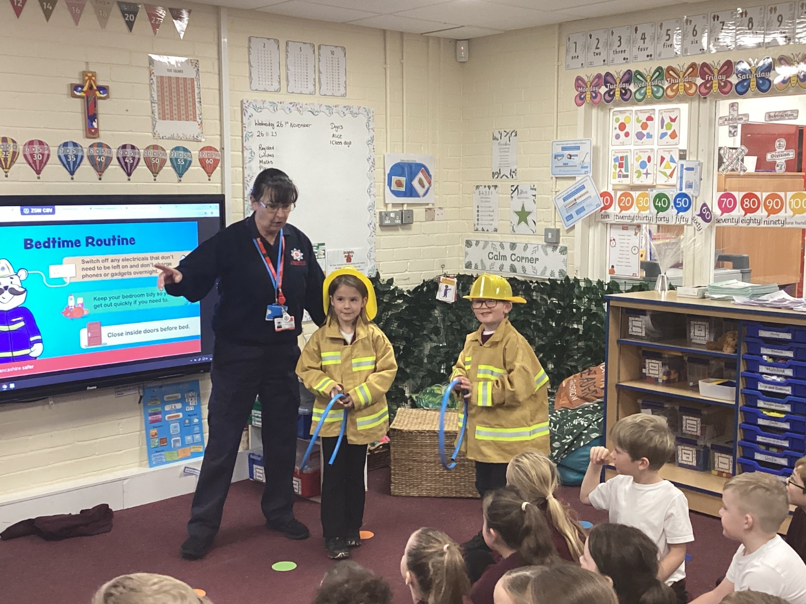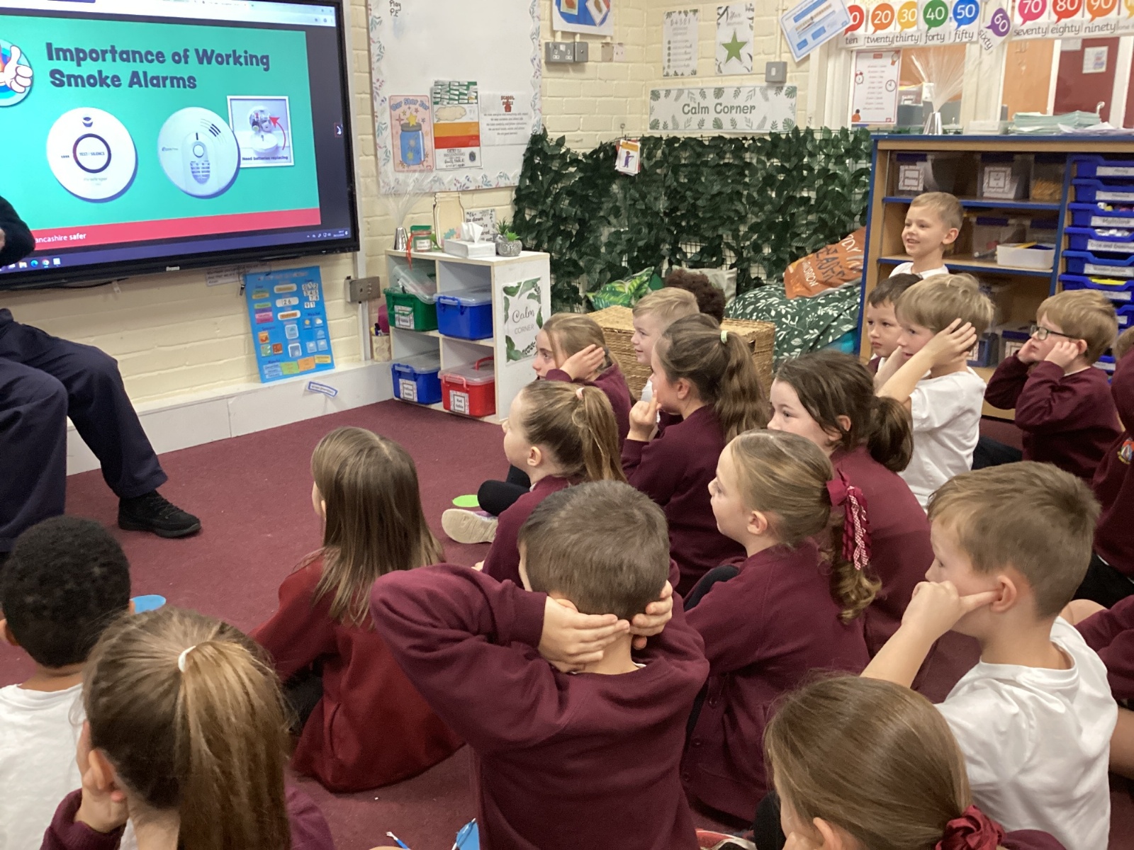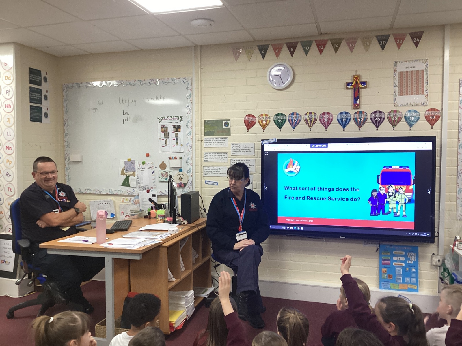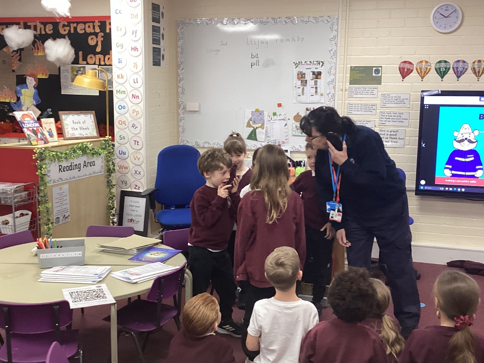 Gerry Hellier and Alan Cole from Lancashire Fire and Rescue came to visit year 2. They discussed fire safety and what to do if we see smoke or a fire, escape plans and what to do if there is a fire in our school or home. Thank you, Gerry and Alan.....