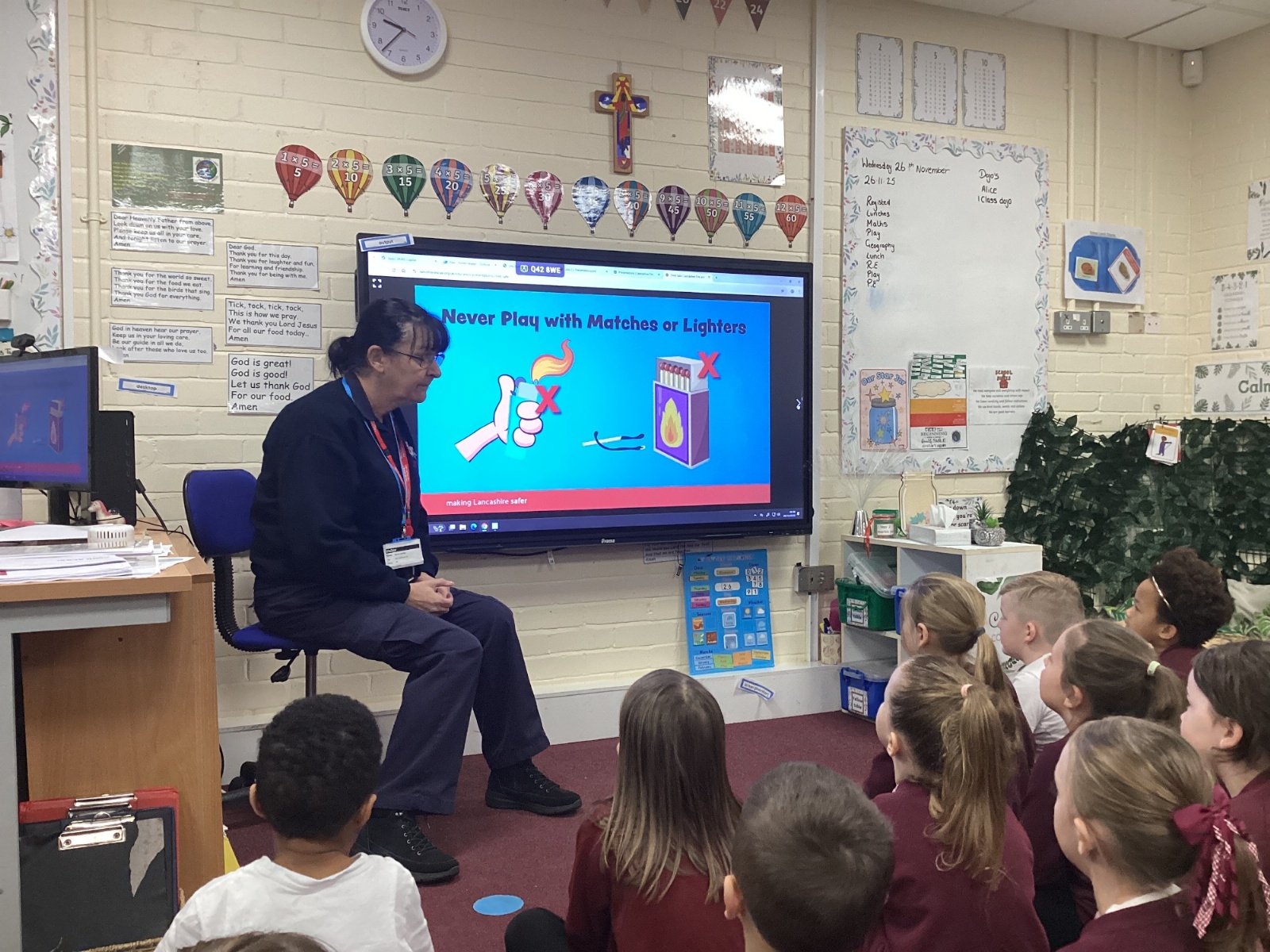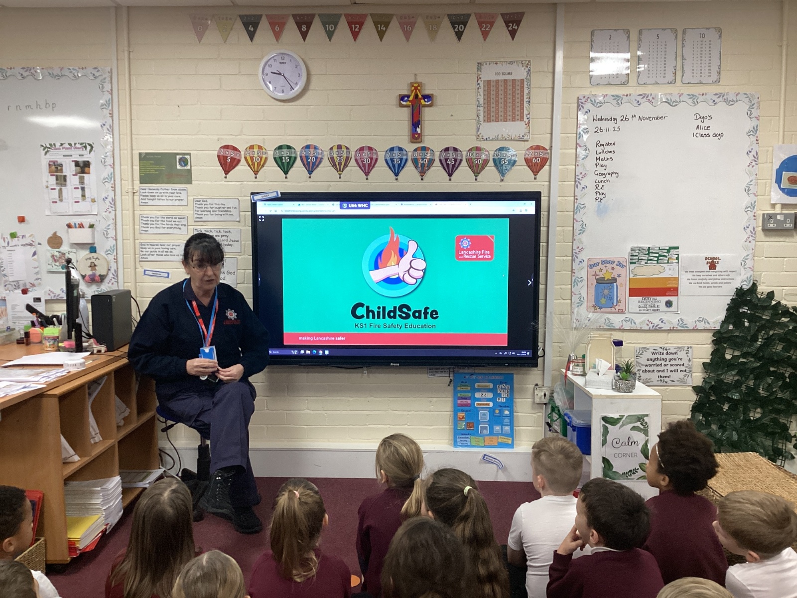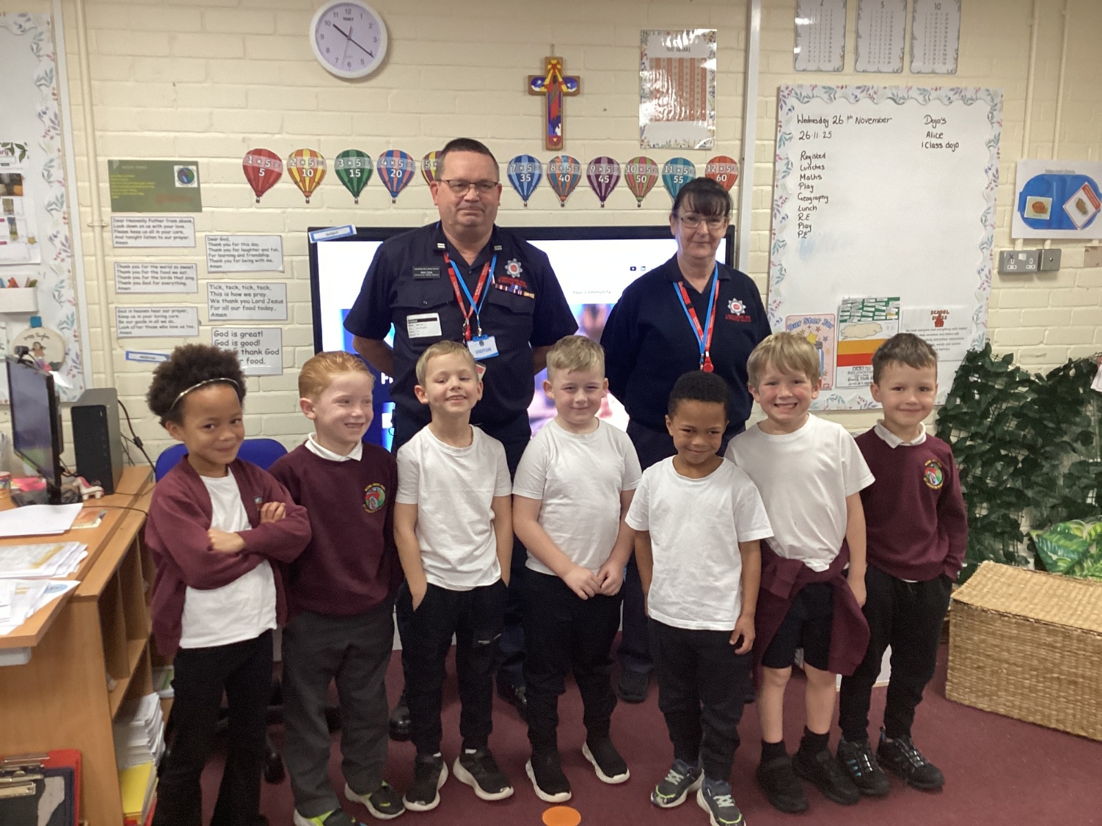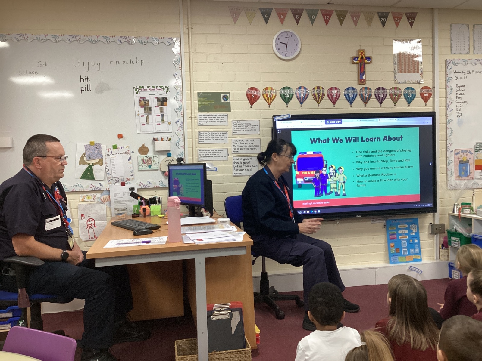Gerry Hellier and Alan Cole from Lancashire Fire and Rescue came to visit year 2. They discussed fire safety and what to do if we see smoke or a fire, escape plans and what to do if there is a fire in our school or home. Thank you, Gerry and Alan.....