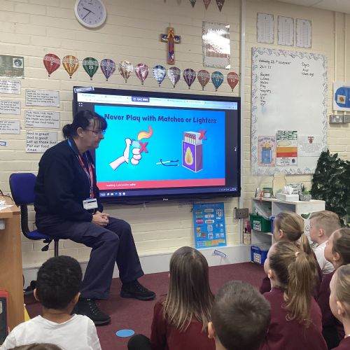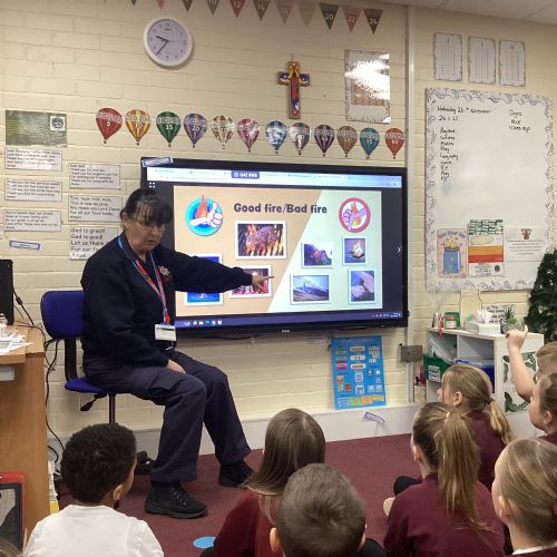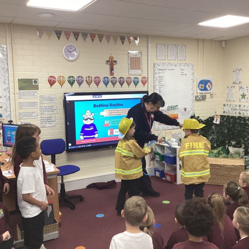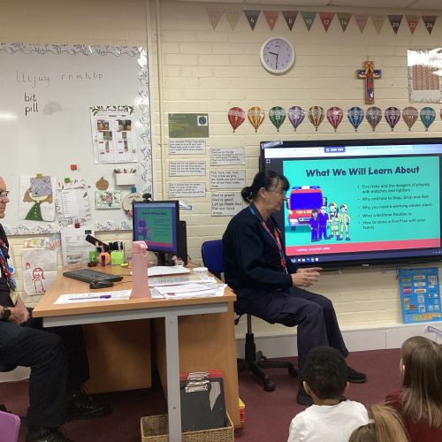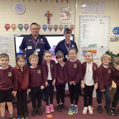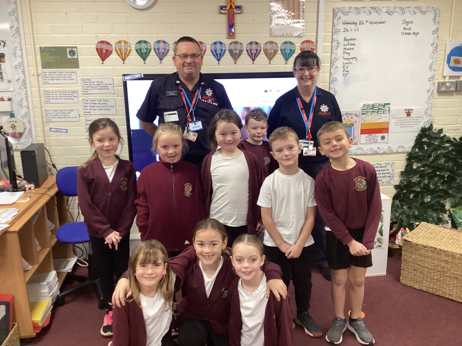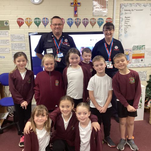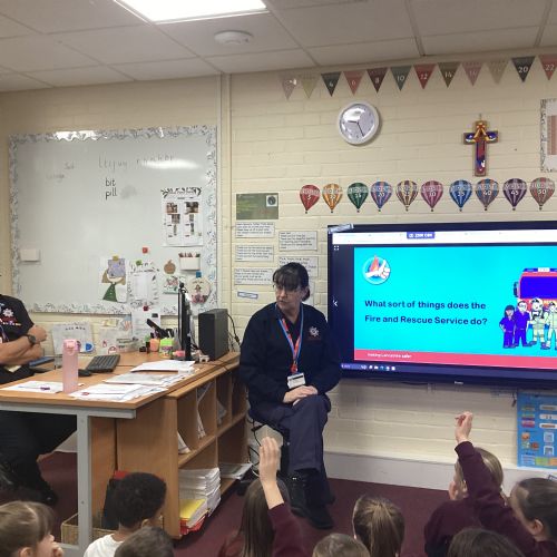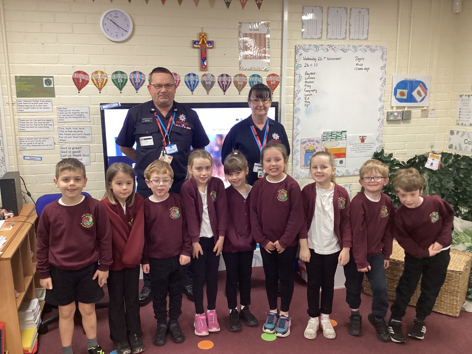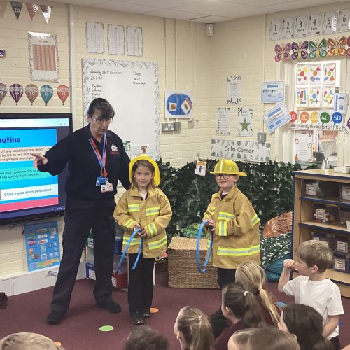 Gerry Hellier and Alan Cole from Lancashire Fire and Rescue came to visit year 2. They discussed fire safety and what to do if we see smoke or a fire, escape plans and what to do if there is a fire in our school or home. Thank you, Gerry and Alan.....