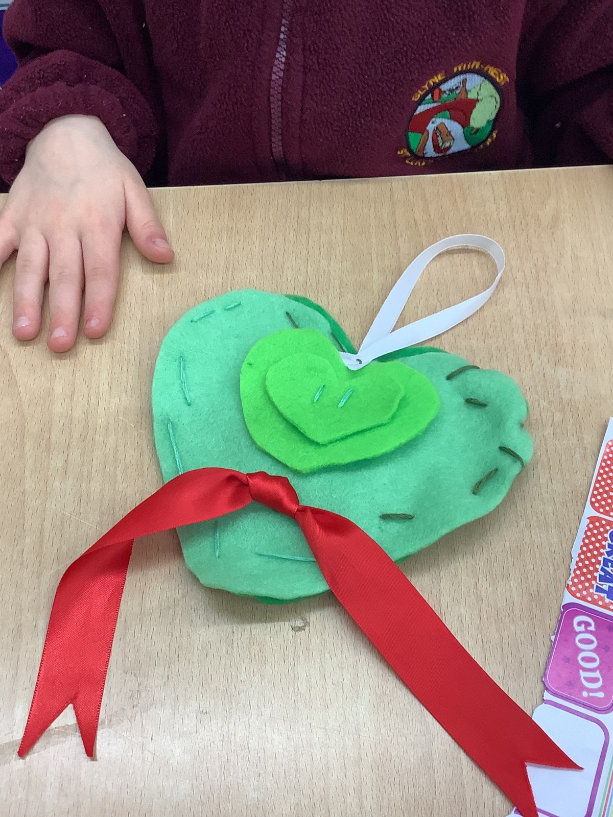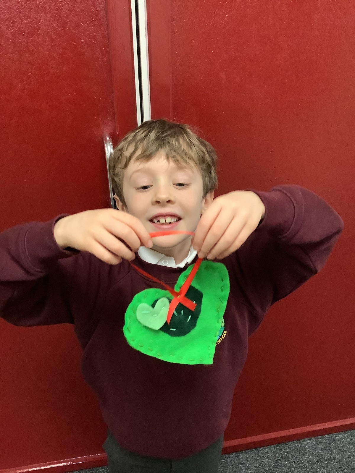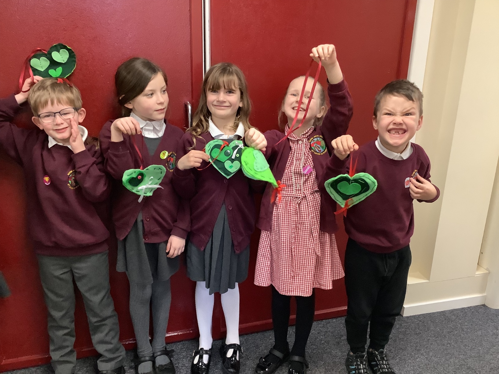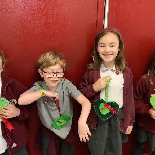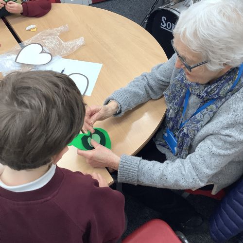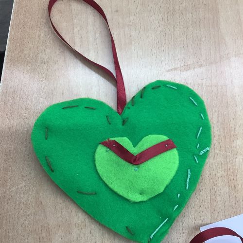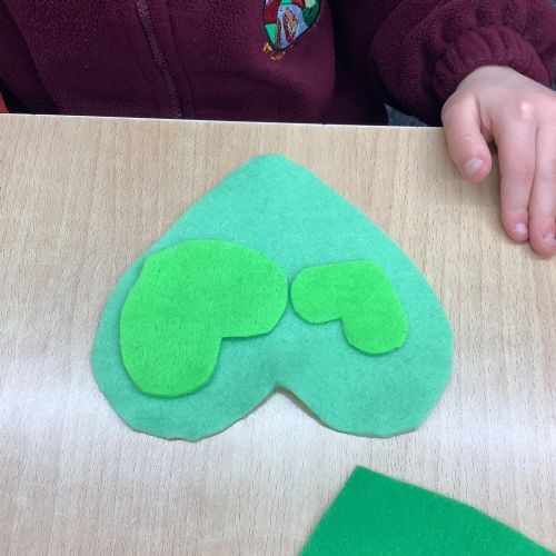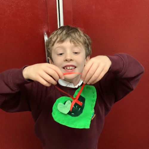 A few children from year 2 were chosen by lottery to help make some hearts which will be hung round the village in due course.