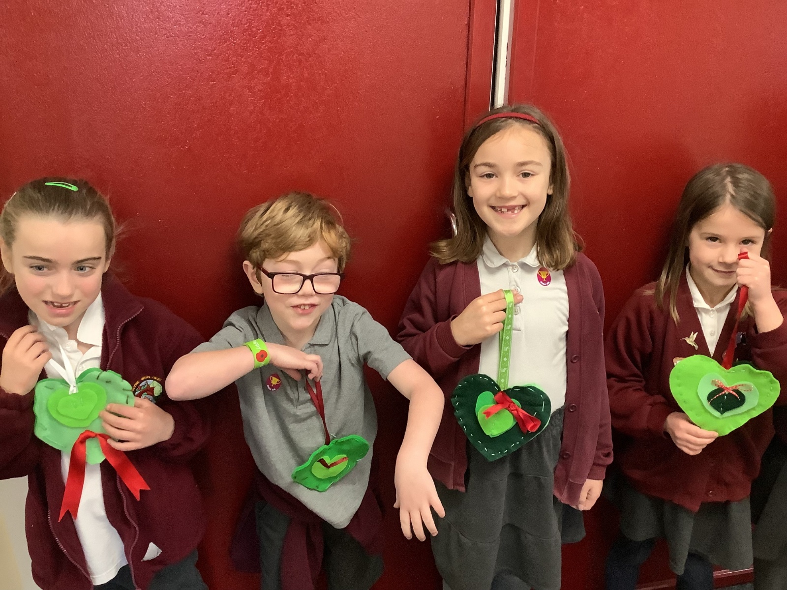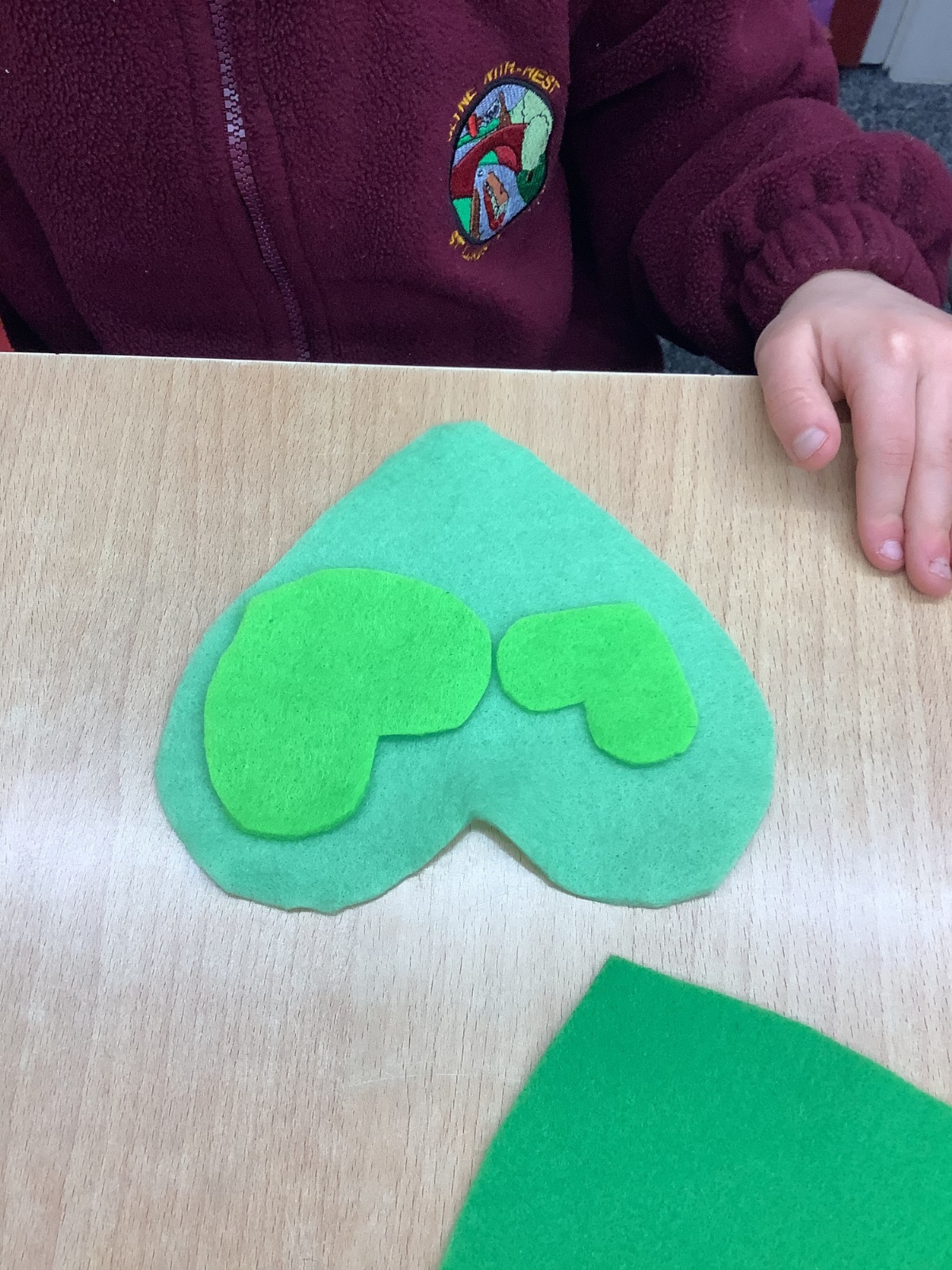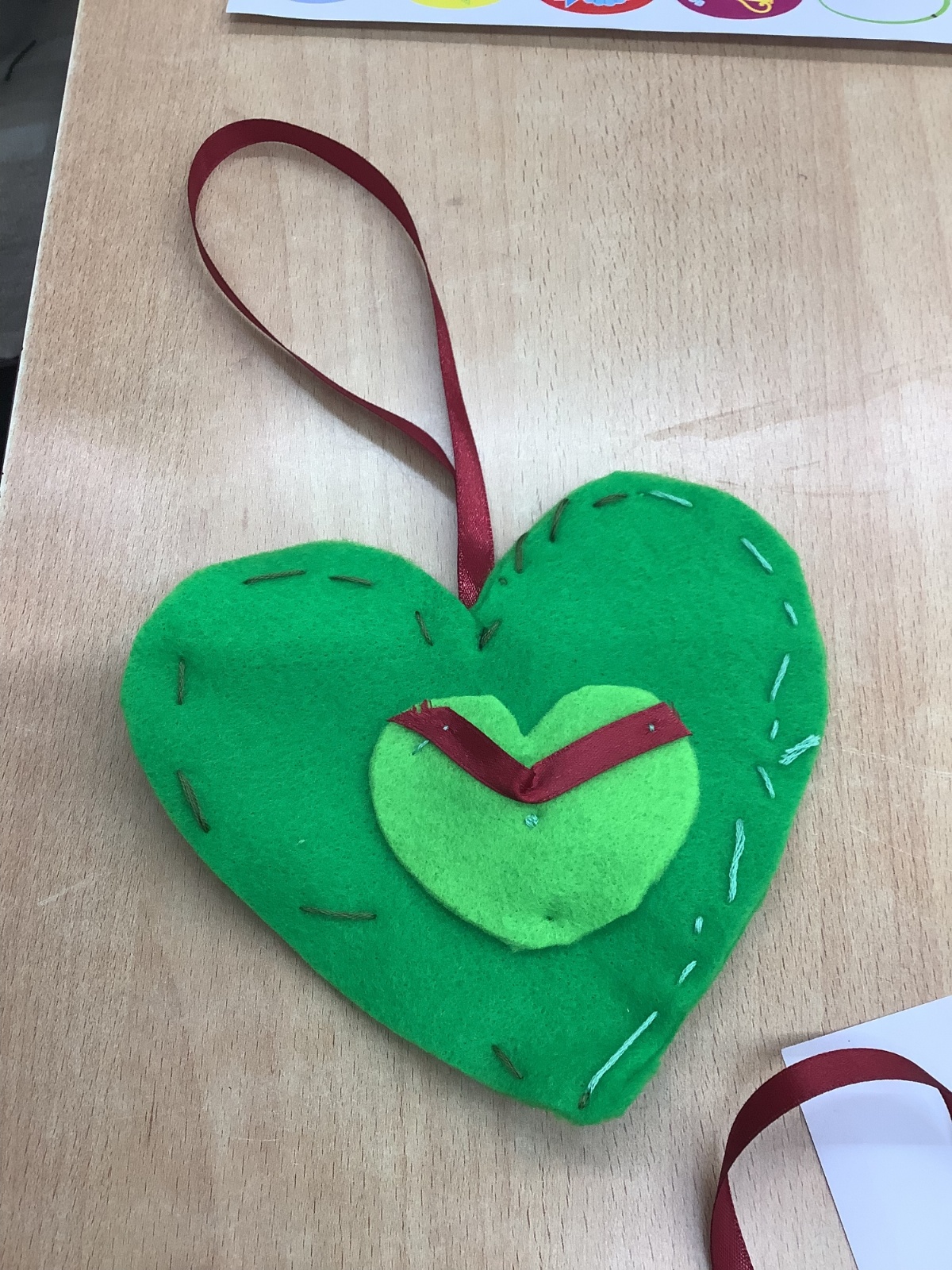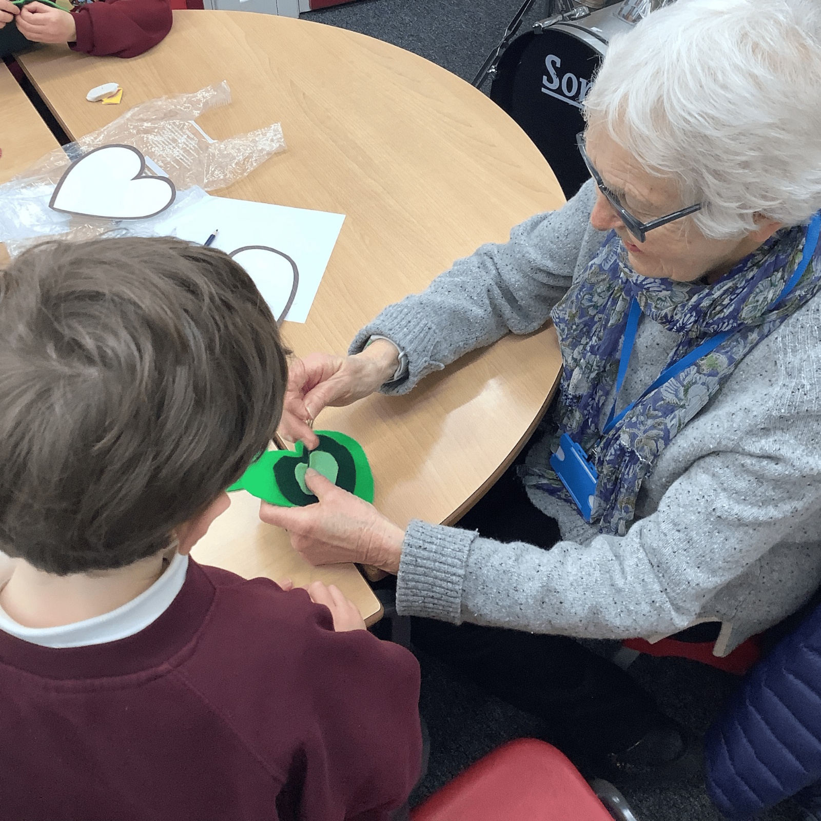 A few children from year 2 were chosen by lottery to help make some hearts which will be hung round the village in due course.